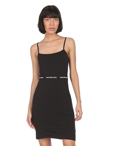 Calvin Klein Women’s Logo Stretch Dress with Thin Straps, Black (Ck Black), L