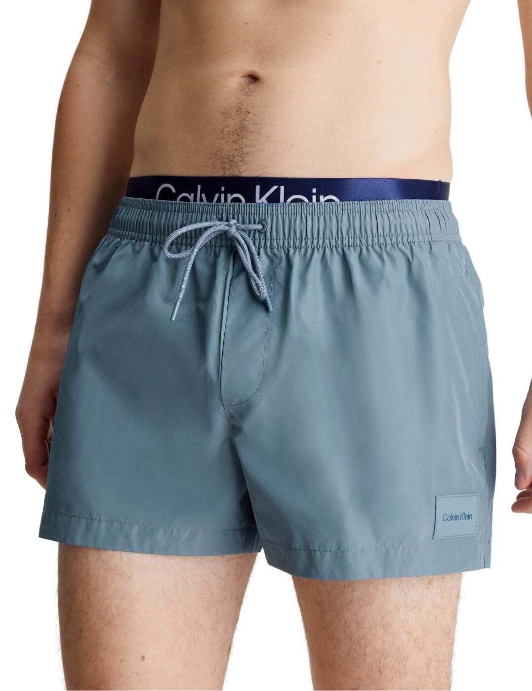 Mens S Calvin Klein CK Steel Short Double Waistband Signature Logo Mens Swimwear
