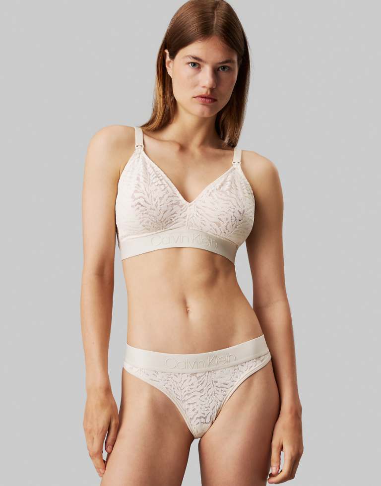 Calvin Klein Womens Maternity Intrinsic CK logo unlined triangle plunge patterned bralette in white - Size X-Small