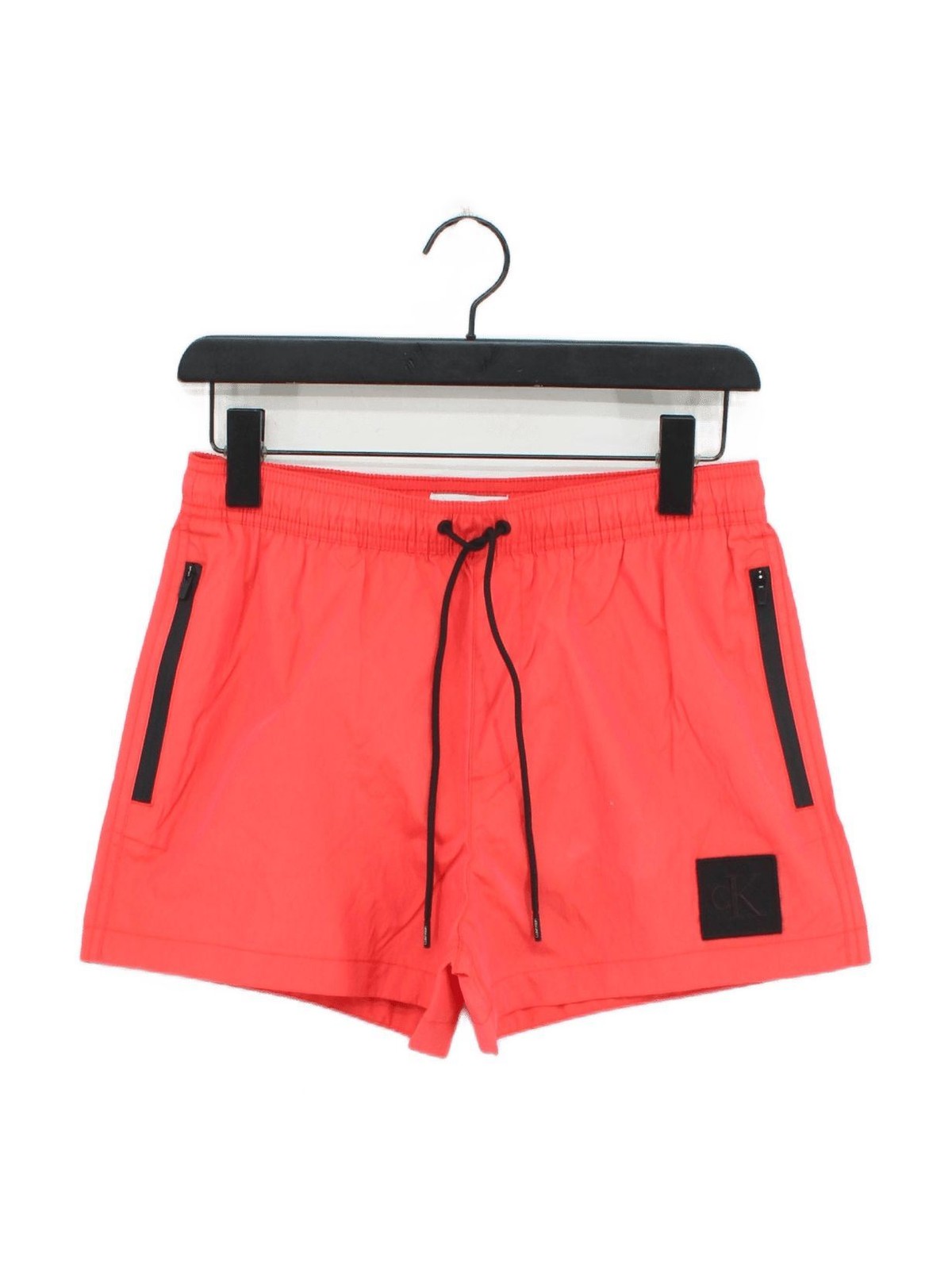 Calvin Klein Men Swim Trunks Medium Double Mid-Length, Red (Hot Heat), S