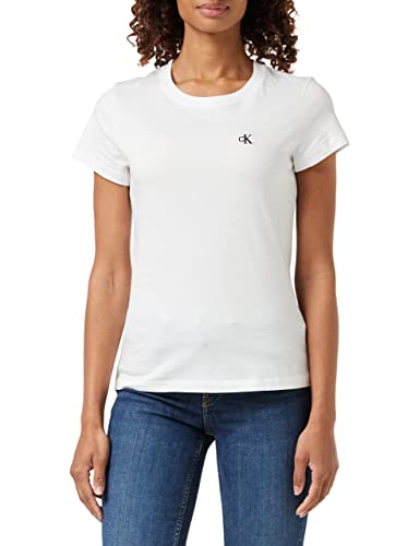 Calvin Klein Jeans Women Short-Sleeve T-Shirt Ck Embroidery Crew Neck, White (Bright White), XS