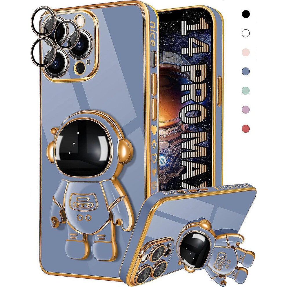 (As show, One size) for iPhone 14 Pro Max Case Astronaut Cute Girls Women Girly Unique Blue Phone Cases with Hidden Stand Kickstand 6D Design with Cam