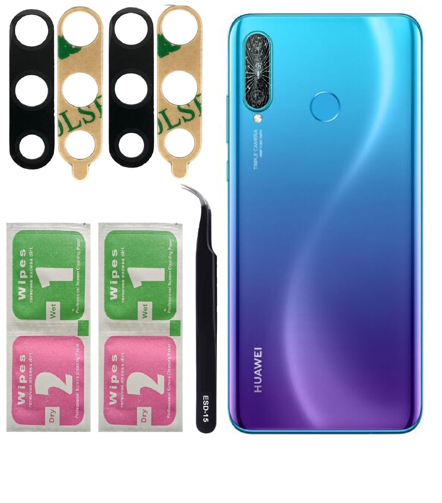 For Huawei P30 Camera Lens Glass Rear Back Lens Replacement & Tools - 2 Pack