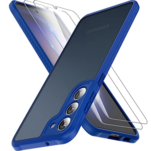 TOCOL 3 in 1 for Samsung Galaxy S23 Case, with 2 Pack Tempered Screen Protector [Upgraded Full Camera Protection] [Military Grade Drop] Translucent Matte Back, Non-Slip Cover for S23 6.1 inch, Blue