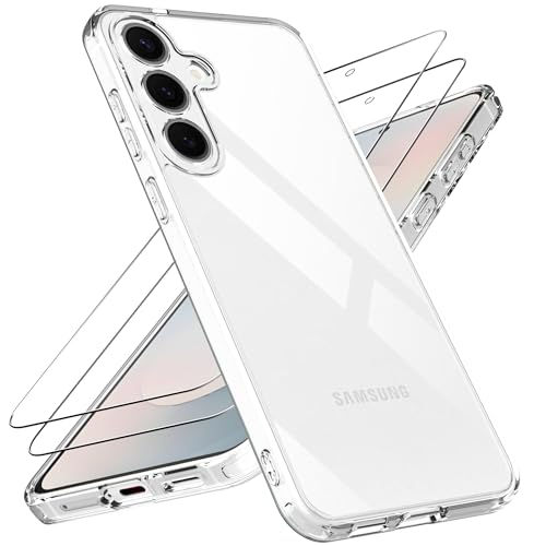 Natbok for Samsung Galaxy S25 FE 5G Clear Case, Samsung S25FE Camera Lens Phone Case + [2 Pack] Screen Protectors, Soft TPU Bumper Hard PC Back Non-Yellowing Anti-Scratch Slim Fit Cover for S25 FE