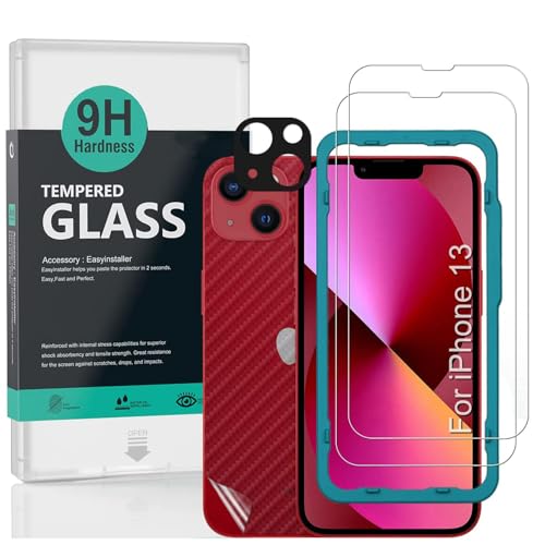 Ibywind Screen Protector (2 Pack) For iPhone 13,9H Hardness Tempered Glass,With 1Pc Metal Camera Lens Protector,1Pc Back Protector,Easy to Install