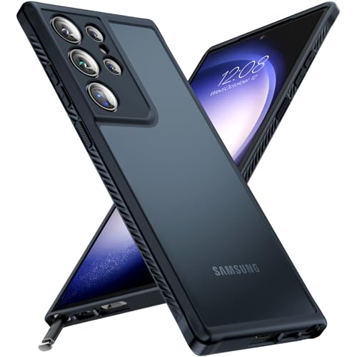 TOCOL 3 in 1 for Samsung Galaxy S23 Ultra Case, with 2 Pack Flexible Screen Protector [Upgraded Full Camera Protection] [Military Grade Drop] Translucent Matte Back, Non-Slip for S23 Ultra 6.8", Black