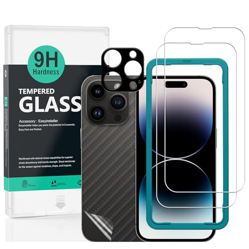 Ibywind Screen Protector (2 Pack) For iPhone 14 Pro,9H Hardness Tempered Glass,With 1Pc Metal Camera Lens Protector,1Pc Back Protector,Easy to Install