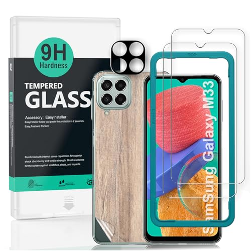Ibywind Screen Protector (2 Pack) For SamSung Galaxy M33 5G,9H Hardness Tempered Glass,With 1Pc Metal Camera Lens Protector,1Pc Back Protector,Easy to Install