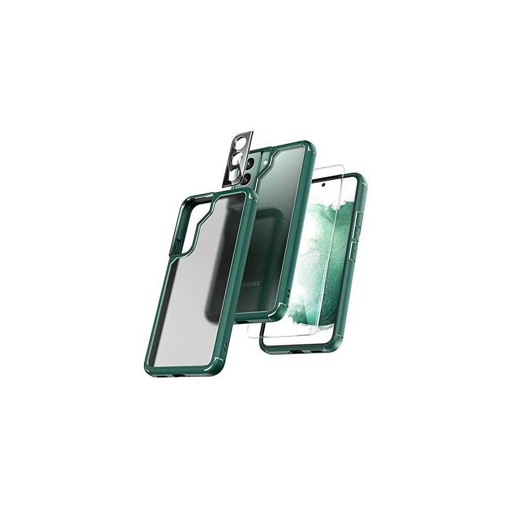 TOCOL 5 in 1 for Samsung Galaxy S22 Case 6.1 Inch, with 2 Pack Screen Protector + 2 Pack Camera Lens Protector, Translucent Matte Back [Military Grade Protection] Shockproof Slim for S22 Case, Green
