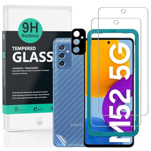 Ibywind Screen Protector (2 Pack) For Samsung Galaxy M52 5G,9H Hardness Tempered Glass,With 1Pc Metal Camera Lens Protector,1Pc Back Protector,Easy to Install