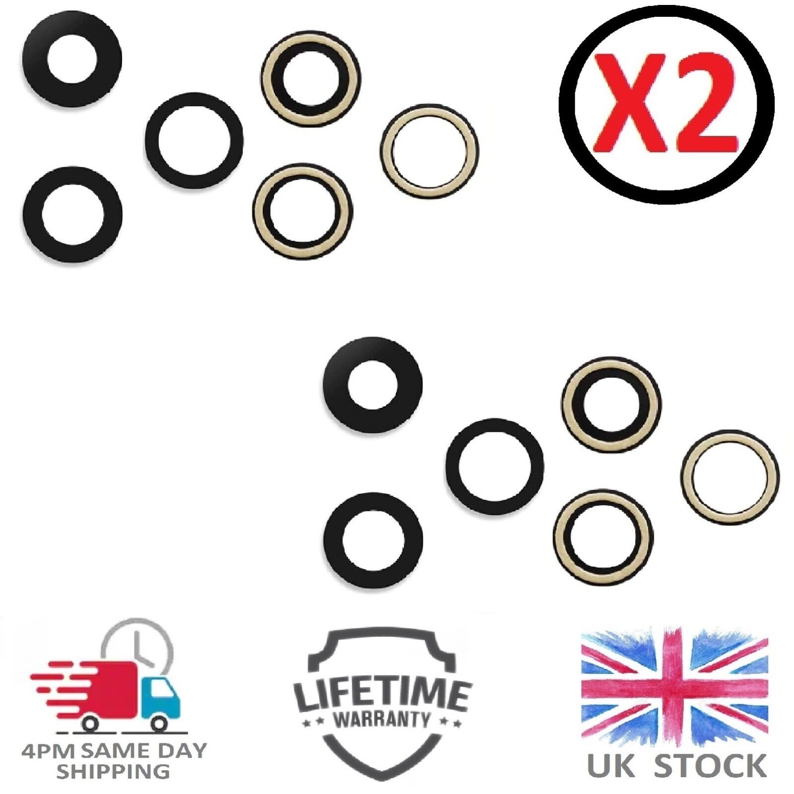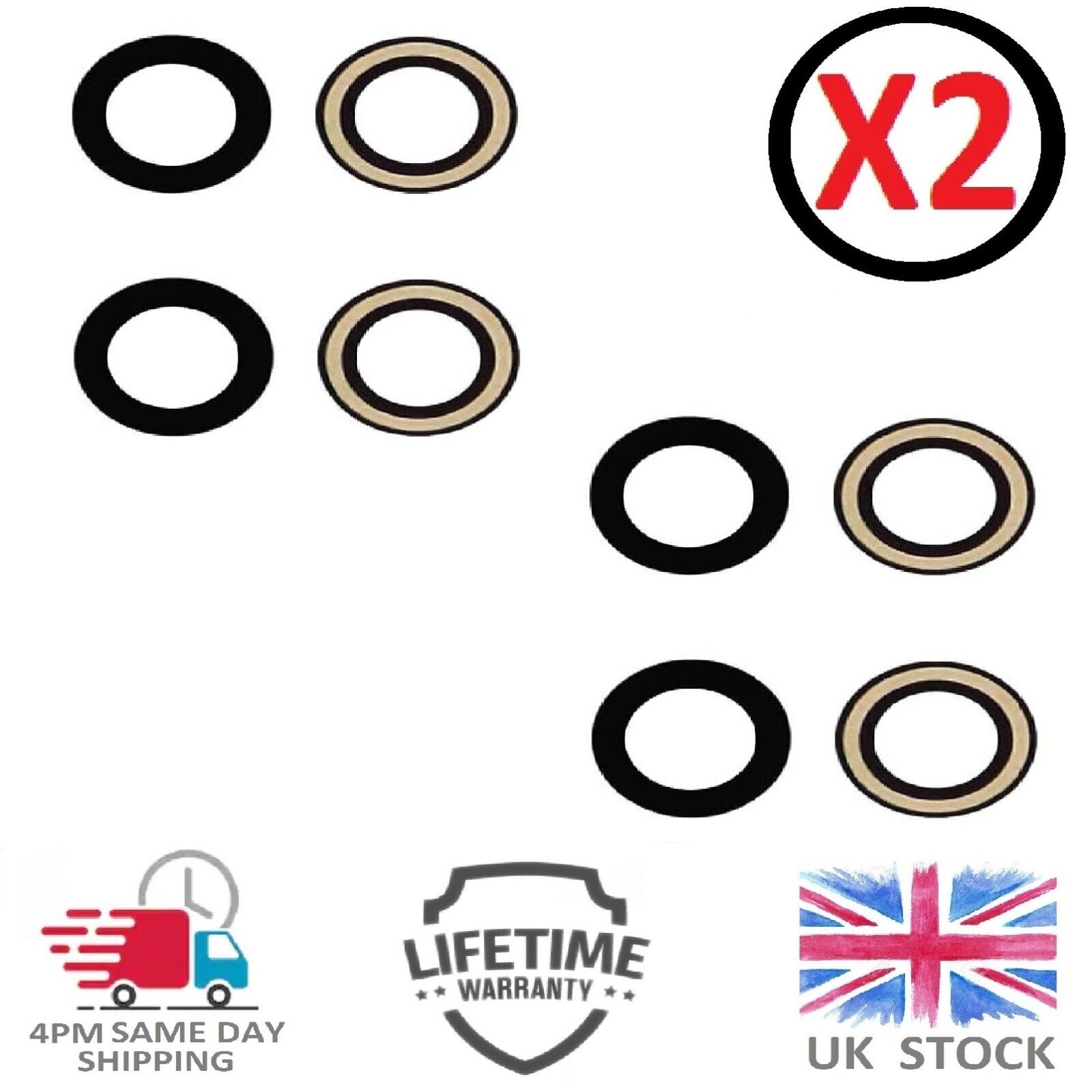 Camera Glass For iPhone X Camera Lens Rear Back Replacement - Two Pack