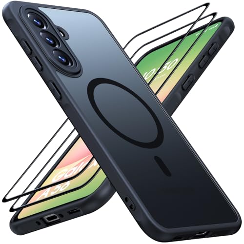 JAME Magnetic for Samsung Galaxy A56 5G Phone Case with MagSafe & 2 Pack Screen Protector, Military Shockproof Cover for Samsung A56 5G Case, Full Camera Protection, Slim Translucent Matte Back, Black