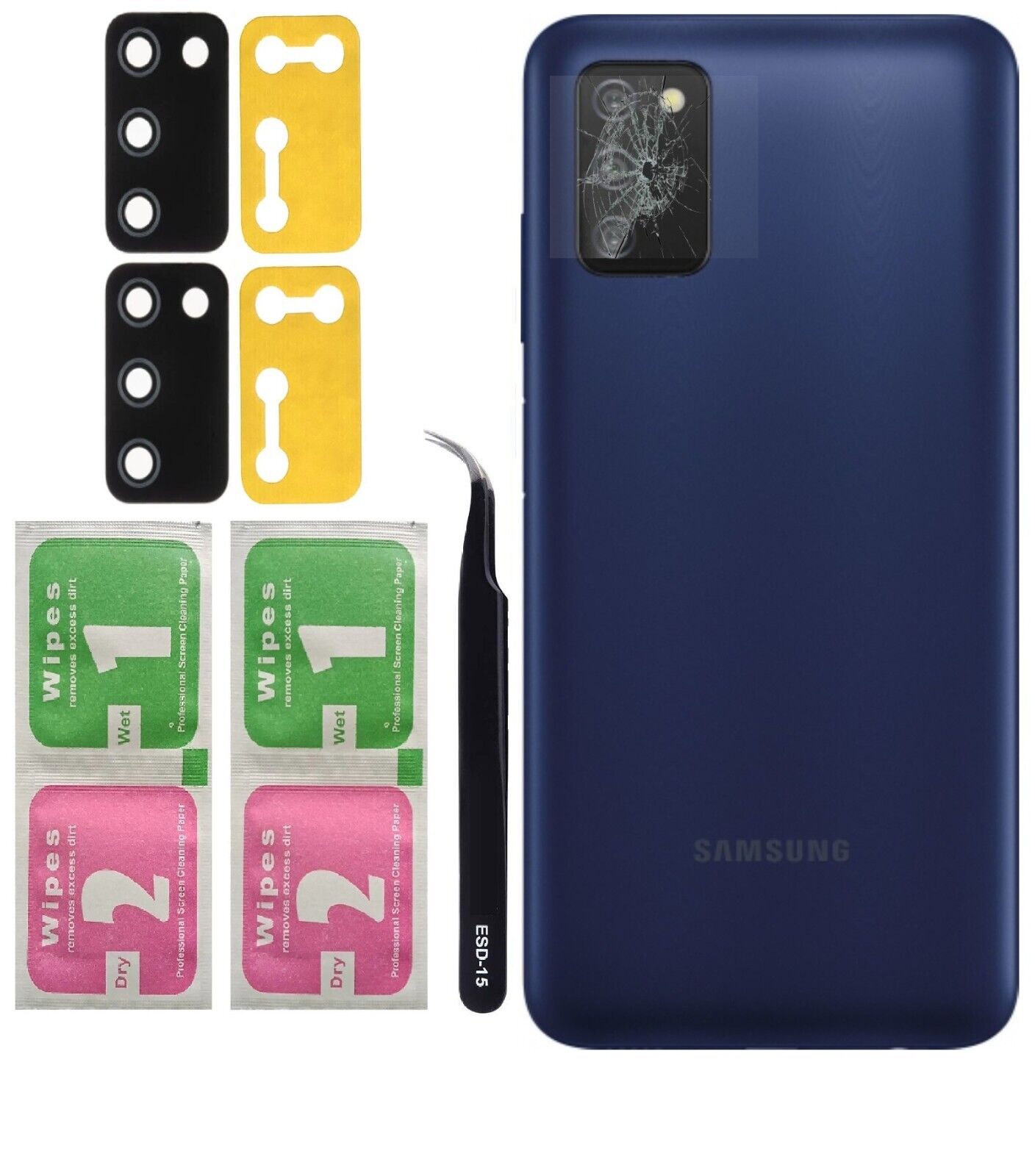 For Samsung Galaxy A03s Camera Glass Lens Rear Back Glass & Tools - 2 Pack