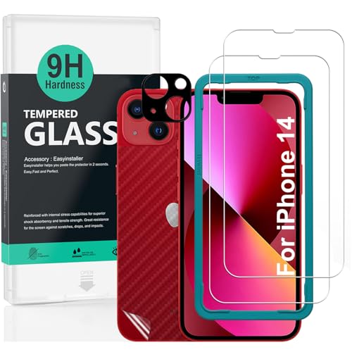 Ibywind Screen Protector (2 Pack) For iPhone 14,9H Hardness Tempered Glass,With 1Pc Metal Camera Lens Protector,1Pc Back Protector,Easy to Install