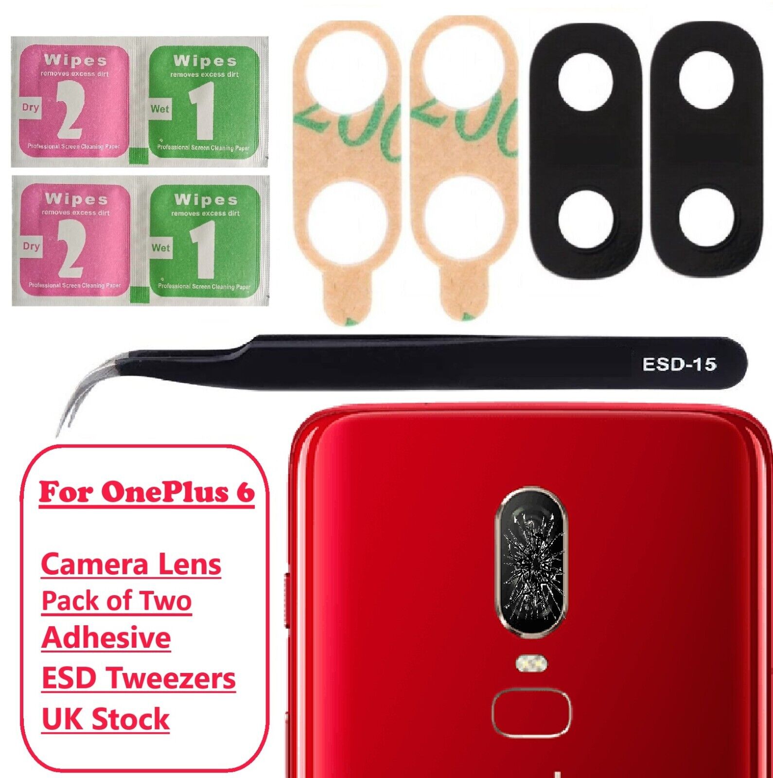 For OnePlus 6 Camera Lens Glass Replacement Back Camera Glass With Tool - 2 Pack