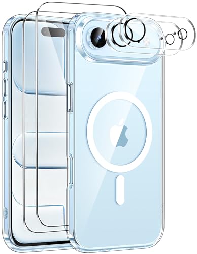 ivencase Magnetic for iPhone Air Case with 2 Pack Screen Protector and 2 Pack Camera Lens Protector, Compatible with MagSafe, Shockproof Protective Clear Back Phone Case for iPhone Air 6.5 Inch -Clear