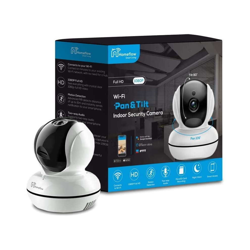 Smart Wifi Pan/Tilt Smart Security Camera, Indoor CCTV, 360° Rotational View, Compatible with Alexa and Google Home, No Hub Required, 1080p, Night