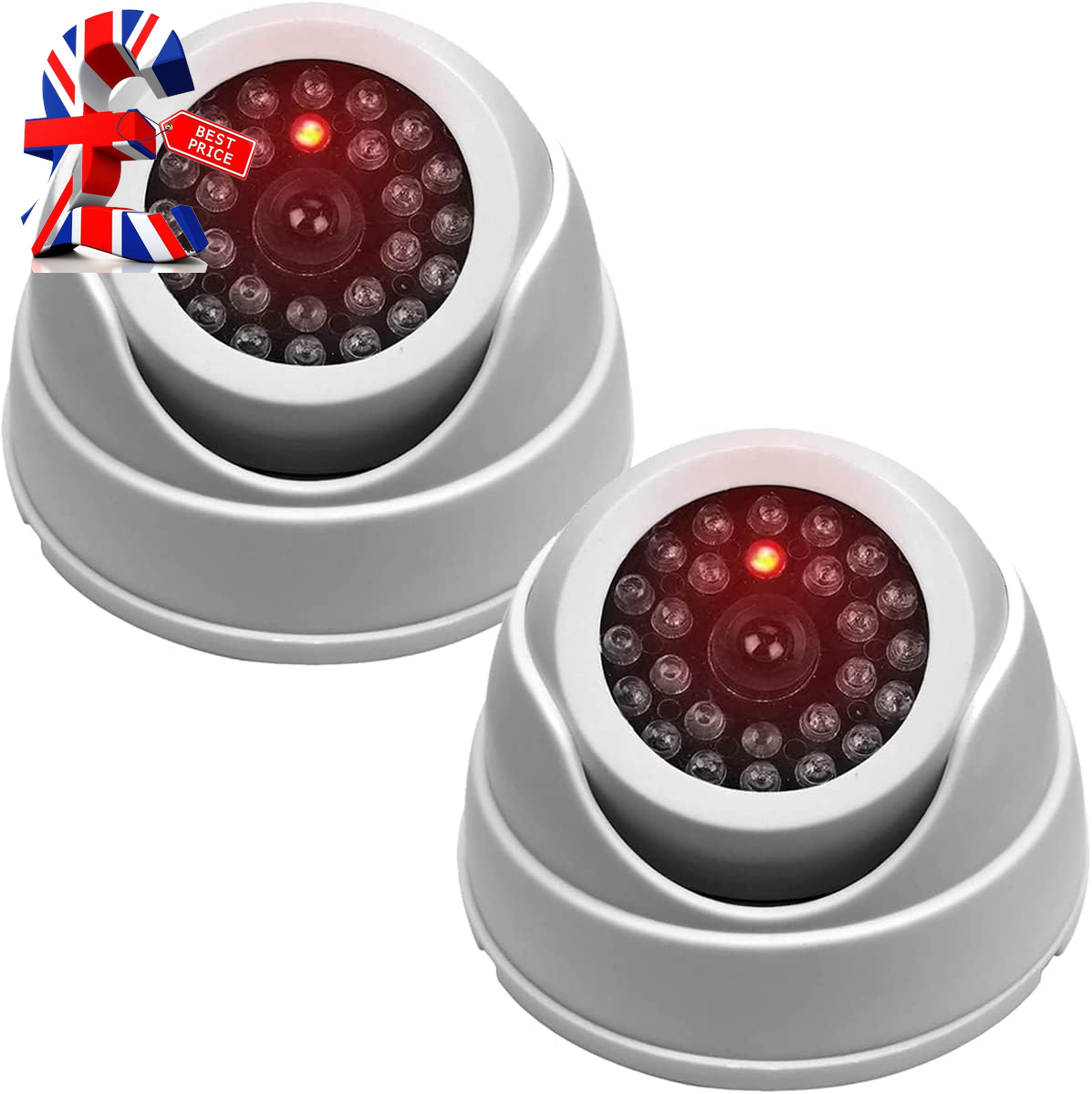 JUSTOP 2x Dome Dummy CCTV Camera Outdoor/Indoor Waterproof With Reality LED Light Fake CCTV Cam - White (Twin Pack)