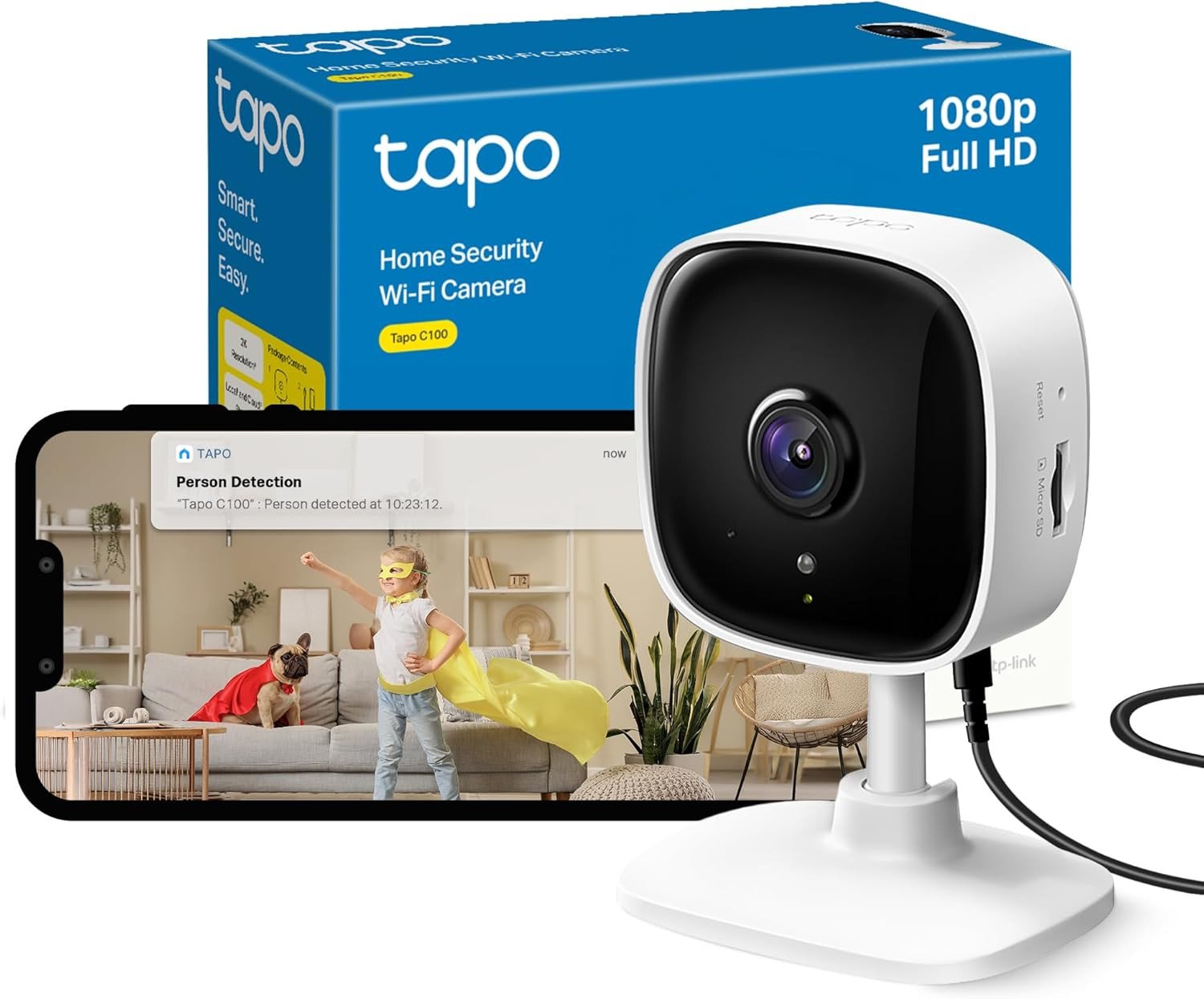 Tapo TC60 Indoor Camera House Security Camera, WiFi Camera, No Monthly Fee, AI Detection, Dog Puppy Camera, Baby Camera Monitor, CCTV, 2-way Talk, Advanced Night Vision, Works with Alexa & Google