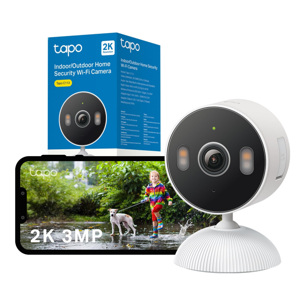Tapo C113 2K 3MP Outdoor Camera Color Night Vision, Security Camera WiFi, IP65 Spotlights, Free AI Baby Cry Detection CCTV Camera, Indoor Cameras Hou