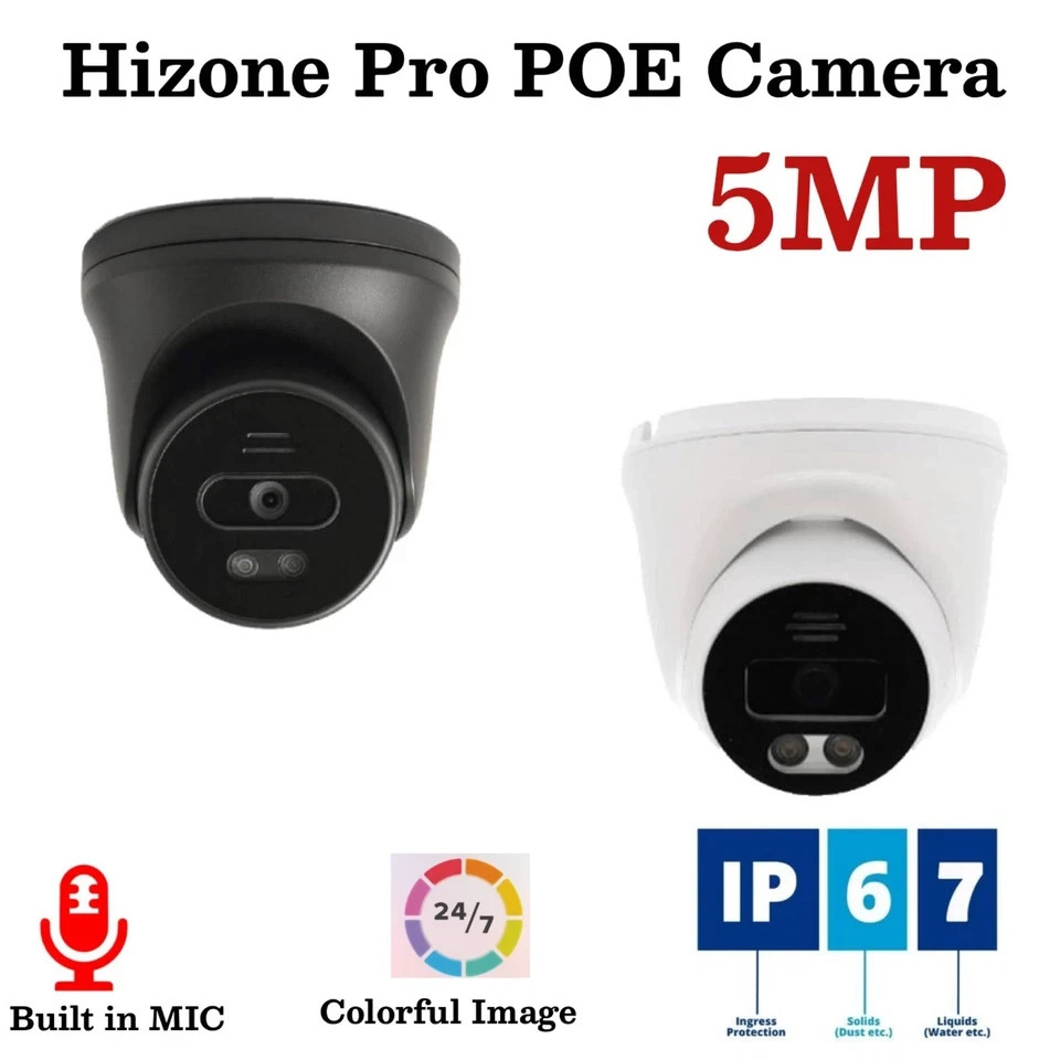 5MP COLOURVU IP POE BUILT-IN MIC CCTV CAMERA INDOOR OUTDOOR SECURITY Black