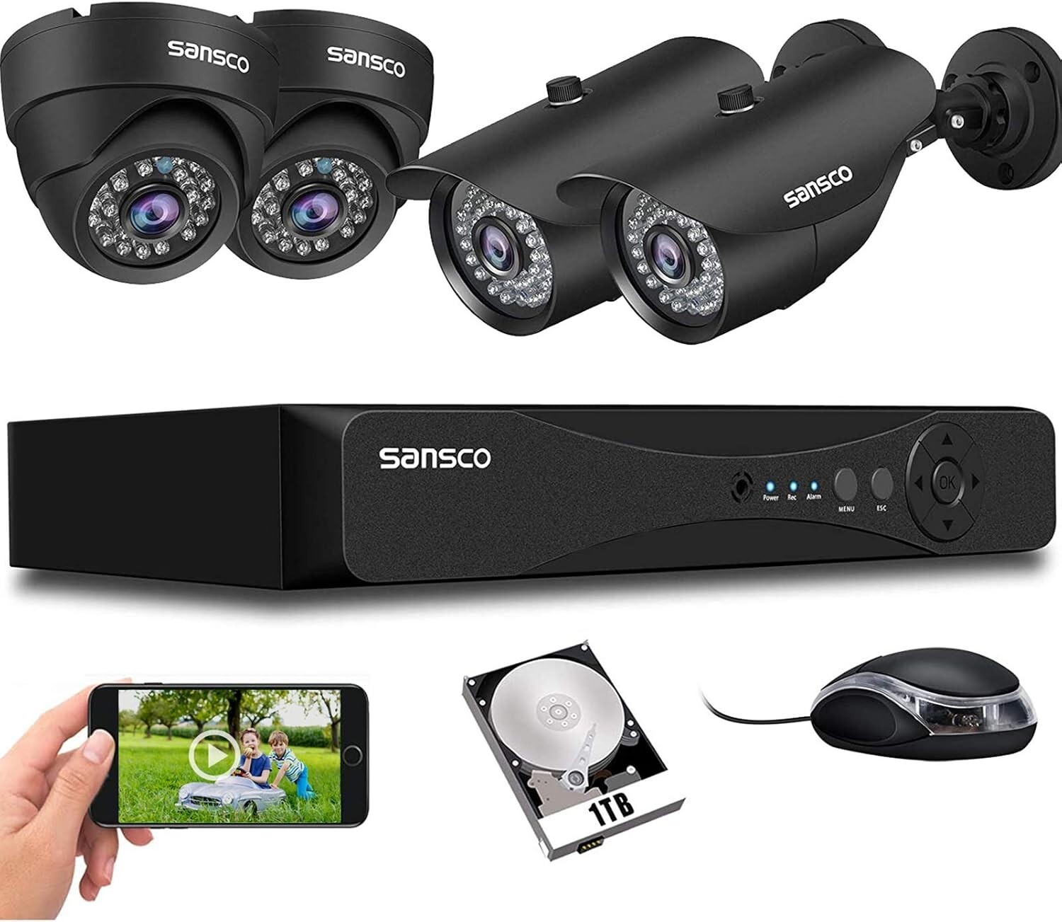 5MP HD CCTV Camera Security System 4CH HDMI DVR Home Outdoor with 1TB Hard Drive