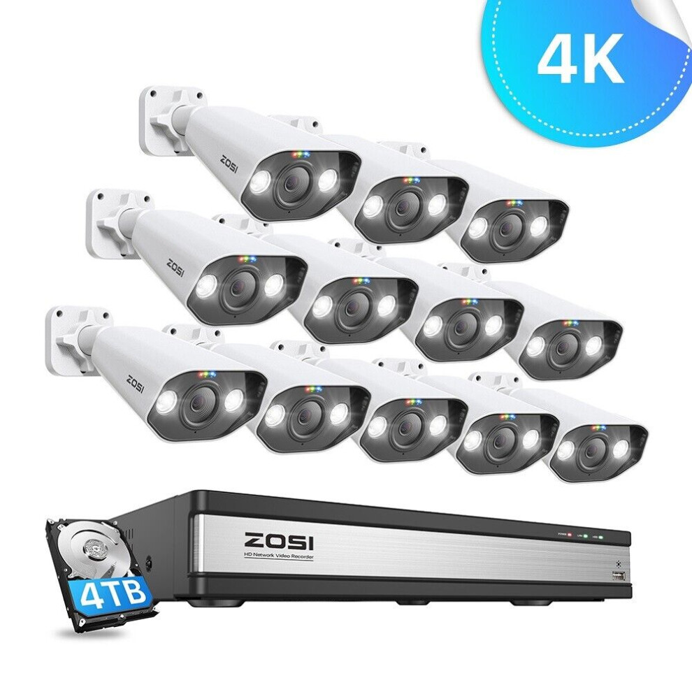 ZOSI 4K 8MP COLORVU POE CCTV CAMERA SECURITY SYSTEM 16CH NVR 4TB HDD