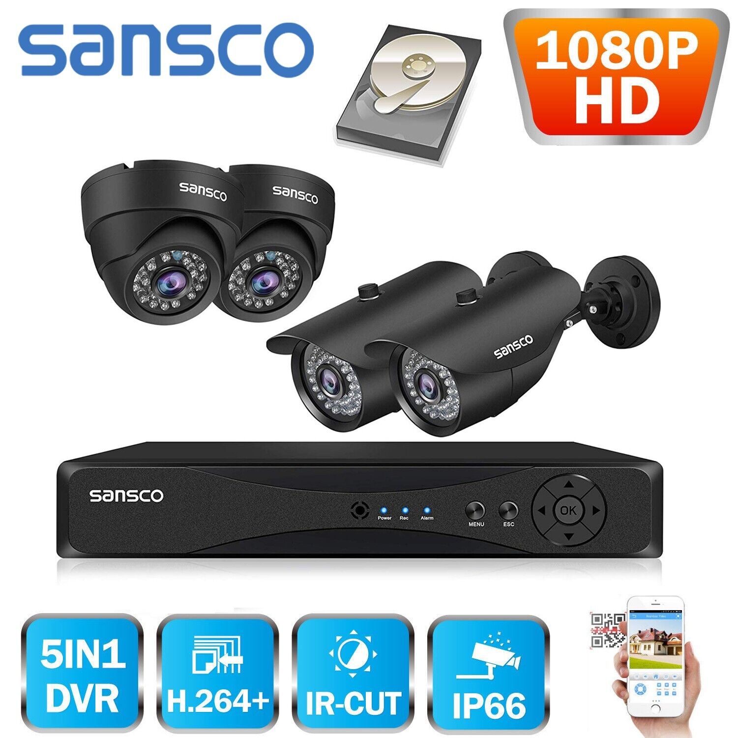 1080P HD CCTV Camera Security System 4CH HDMI DVR Home Outdoor with Hard Drive