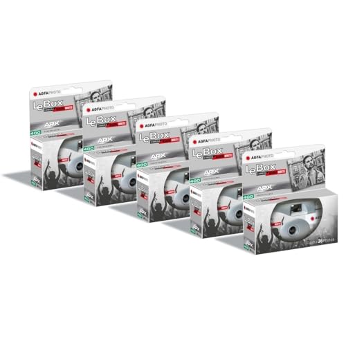 AGFA Photo Pack 5 x 601026 - LeBox Black & White Disposable Camera, 27 Photos, 31 mm Optical Lens - Grey - Grey