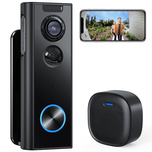 Wireless Doorbell Camera with Chime, 2K HD Smart WiFi Door Bell Cameras,Head-to-Toe View, Battery Operated, PIR Motion Detection, 2-Way Audio, Night Vision, SD Card & Cloud Storage,Works with Alexa