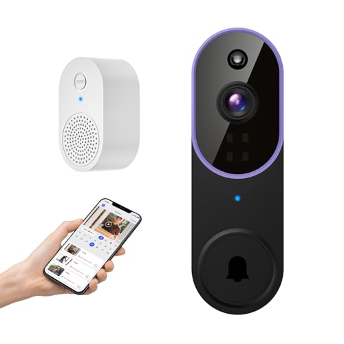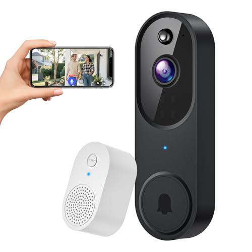FineLuck Video Doorbell Camera WiFi Wireless with Doorbell Receiver, Battery Powered, AI Human Detection, 2-Way Talk, 2.4G Wi-Fi, Cloud Storage, Color Night Vision, Indoor Outdoor Surveillance