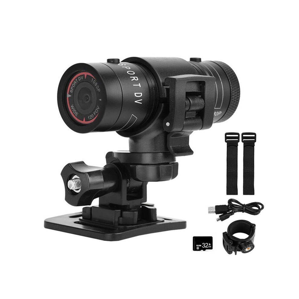 (CHINA, with 32G TF Card) Bike Helmet Camera 120 Wide Angle Bicycle Sports Camera Waterproof Action Camera for Outdoor Cycling Sports