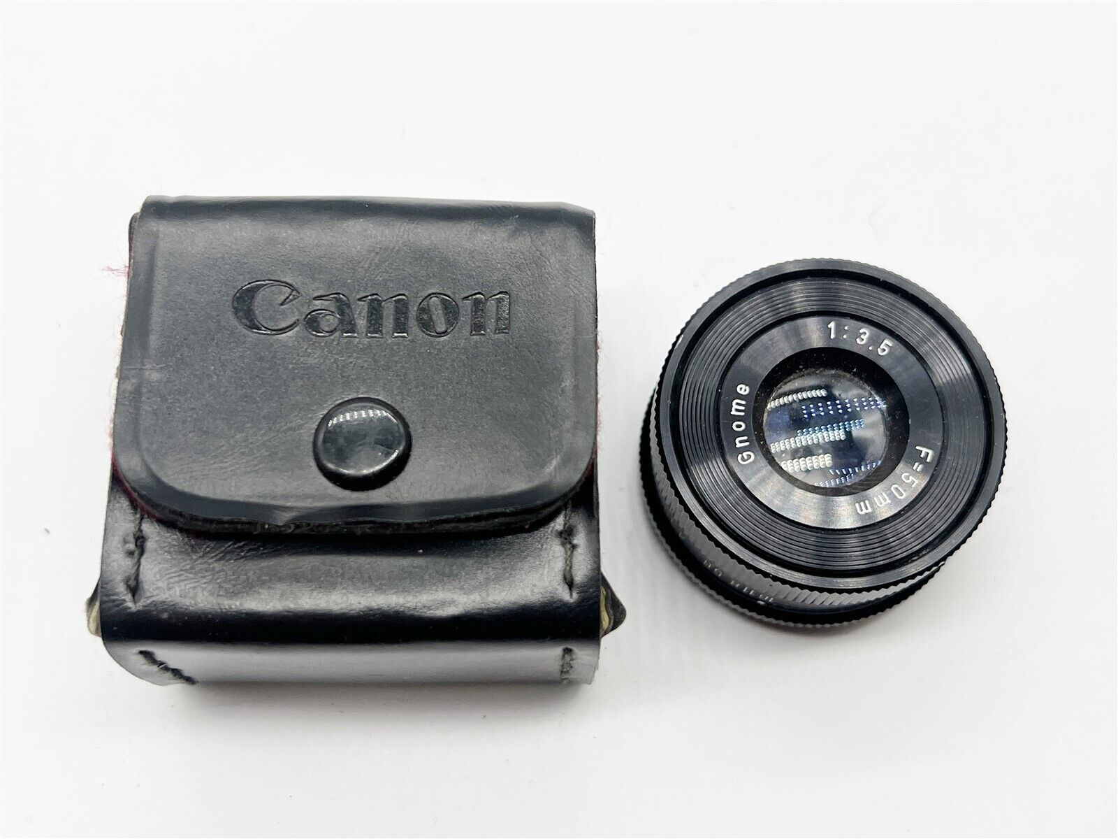 VINTAGE CASED CAMERA LENS GNOME F50mm 1.3.5 IN CANON CASE