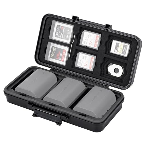 JJC 3IN1 Memory Card Camera Battery Case Waterproof for Canon LP-E6 Nikon EN-EL15 Sony NP-FZ100 Fuji. NPW235 x3 / AA Battery x6, Card Holder for SD x6 + CF Typ B/XQD x6 + CF Typ A x5