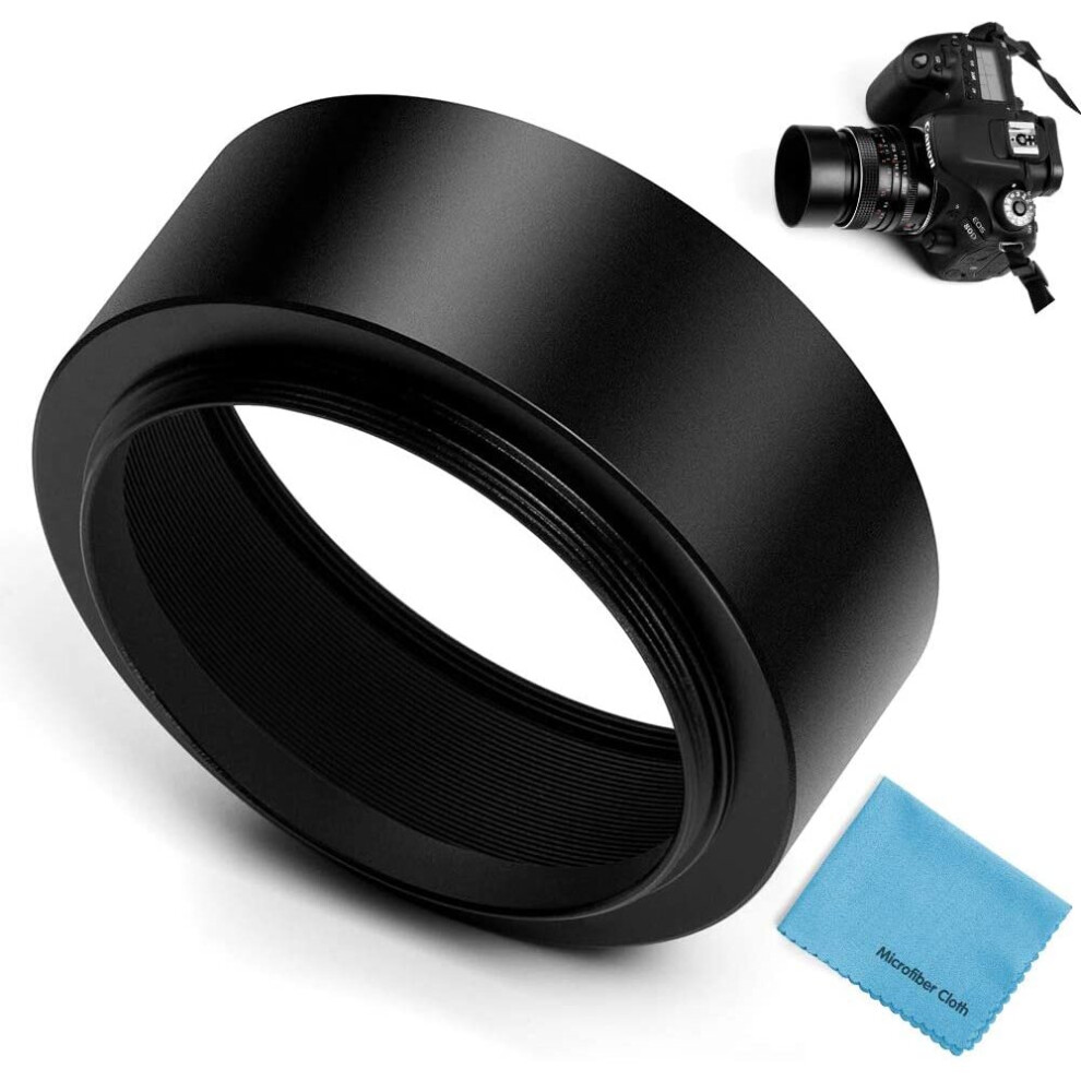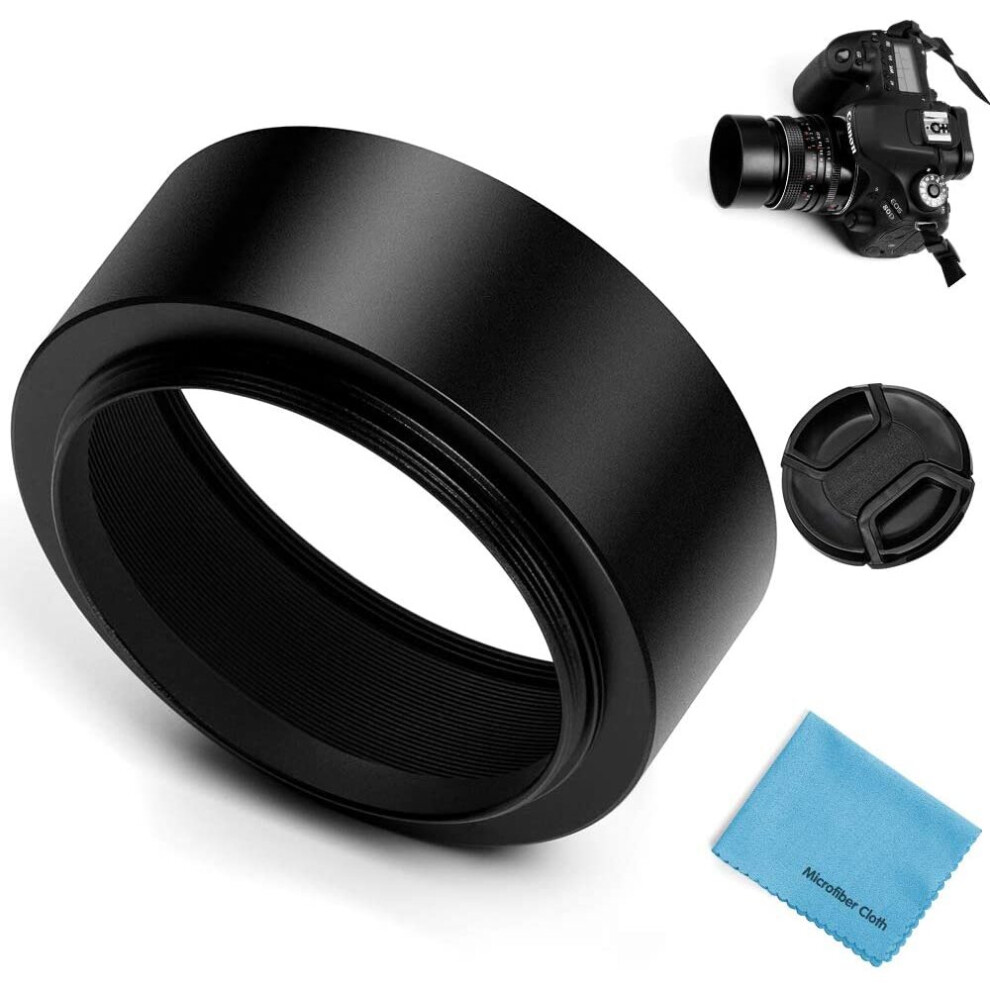 Fotover 49mm Tele Metal Screw-in Lens Hood with Centre Pinch Lens cap for Canon Nikon Sony Pentax Olympus Fuji Sumsung Leica Camera + Cleaning Cloth