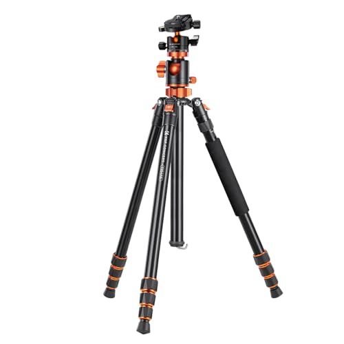 K&F CONCEPT 76 inch Twist lock Camera Tripod,Professional Center Axis Horizontal Tripods with Detachable Monopod,360 Degree Ball Head,Quick Release Plate Compatible with DSLR Cameras T254A6+BH-28L