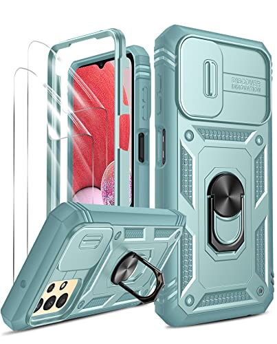 LeYi for Samsung A13 Phone Case with Camera Cover Slider, (2 Pack HD Screen Protector) 360° Full Body Protective Shockproof Heavy Duty Cover with Ring Stand for Galaxy A13 4G Green