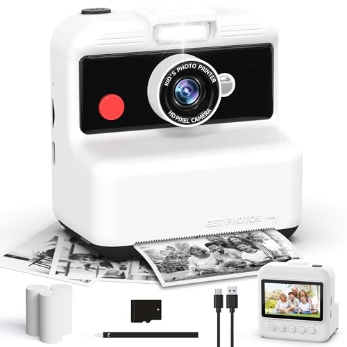 CAMCLID Kids Camera Instant Print, 3,0 Inch/48MP Instant Camera for Kids, 2.5K UHD Digital Video with 32GB Card, Christmas Birthday Toy Gifts for Girls Boys 3 4 5 6 7 8 9 10 Years Old (White)