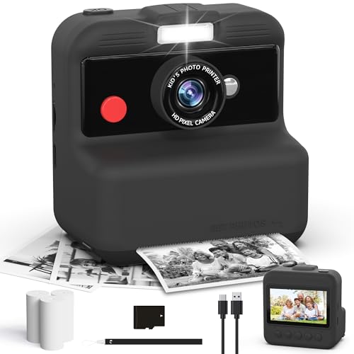HiMont Kids Camera Instant Print, 1080P Instant Print Camera for Kids with 32GB Card & 3 Rolls Paper, Selfie Digital Camara, Funny Toys Gifts for Boys & Girls Age 3-12 (Black)