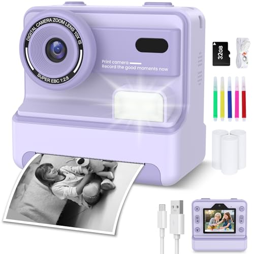 CAMCLID Kids Camera Instant Print, 3,0 Inch/48MP Instant Camera for Kids, 2.5K UHD Digital Video with 32GB Card, Christmas Birthday Toy Gifts for Girls Boys 3 4 5 6 7 8 9 10 Years Old (Purple)