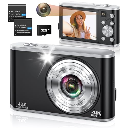 Digital Camera, 4K 48MP Autofocus Vlogging Camera Selfie Cameras with Anti-shake 16X Digital Zoom Flash 32G Memory Card, Compact Digital Cameras for Beginners Kids