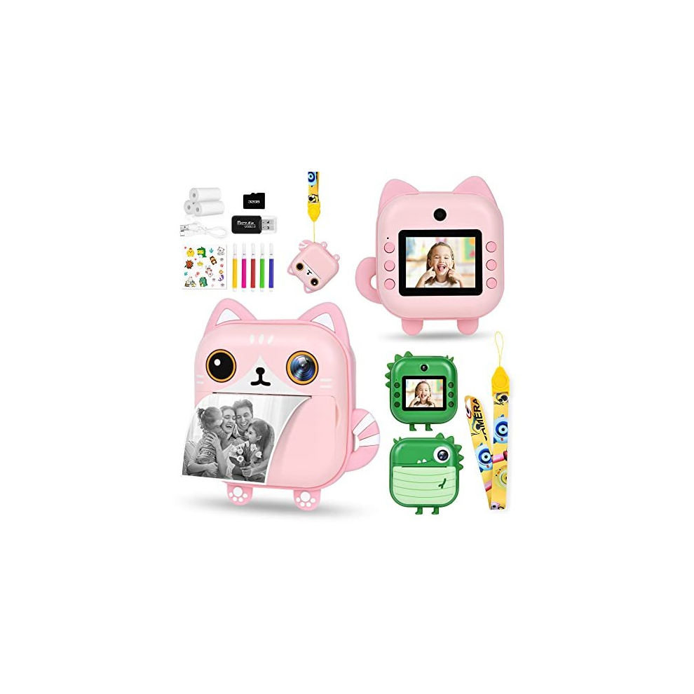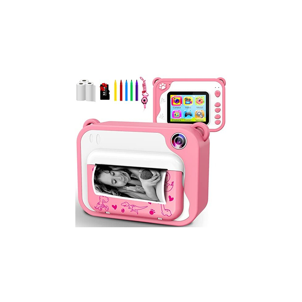 Kids Digital Camera,Instant Print Cameras for Kids,2.0 Inch Screen,1080P Print Camera with 32GB Memory Card, 5 Color Pens,3 rolls of printing papers,
