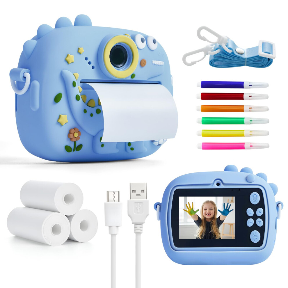 Subtail Kids Camera Instant Print - 2.4'' Instant Camera for Kids with 32GB Card | 3 Rolls Print Paper - 1080P Selfie Kids Digital Cameras - Birthday Kids Toys Gifts for Girls Boys Aged 3-12 - Blue