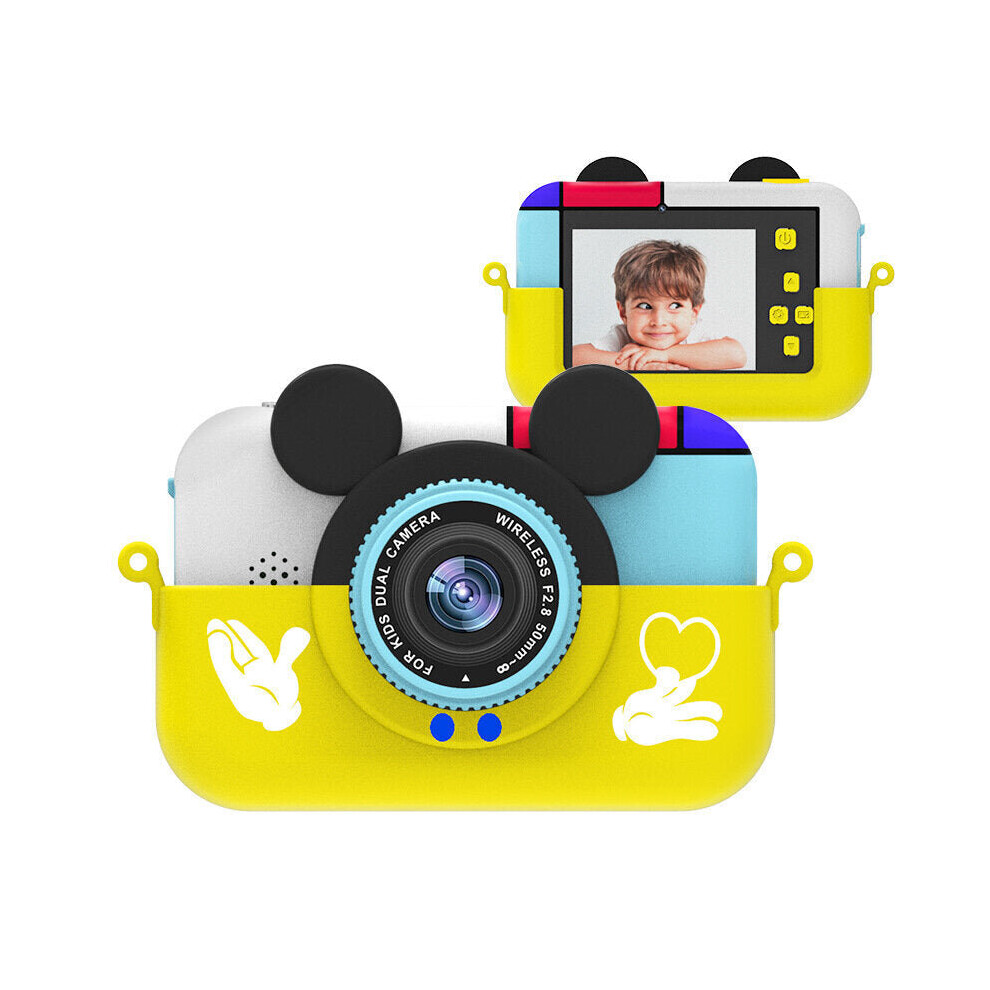 (Yellow) 2.4inch Screen Mini Digital Camera Camcorder Dual Lens 800mAh Rechargeable Battery Portable Cameras for Kids Toys Selfie Video