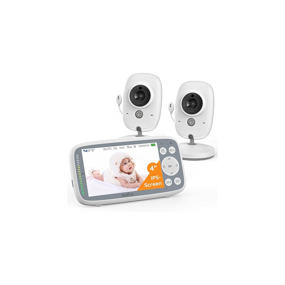Boifun Video Baby Monitor with 2 Cameras, 720P IPS Screen, Invisible Infrared Night Vision, VOX Mode, No WiFi, Two-way Talk, Temperature Sensor, Lullabies, 4-inch, for Twins Two Children, Dual Cameras