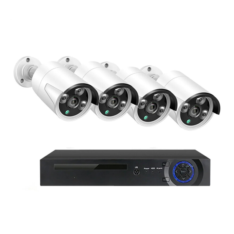 PoE Security Camera System 1080P Full HD 4 Channel NVR Kit with Infrared Night Vision Waterproof Dome Cameras