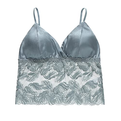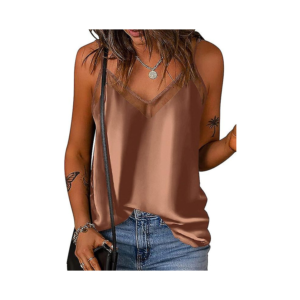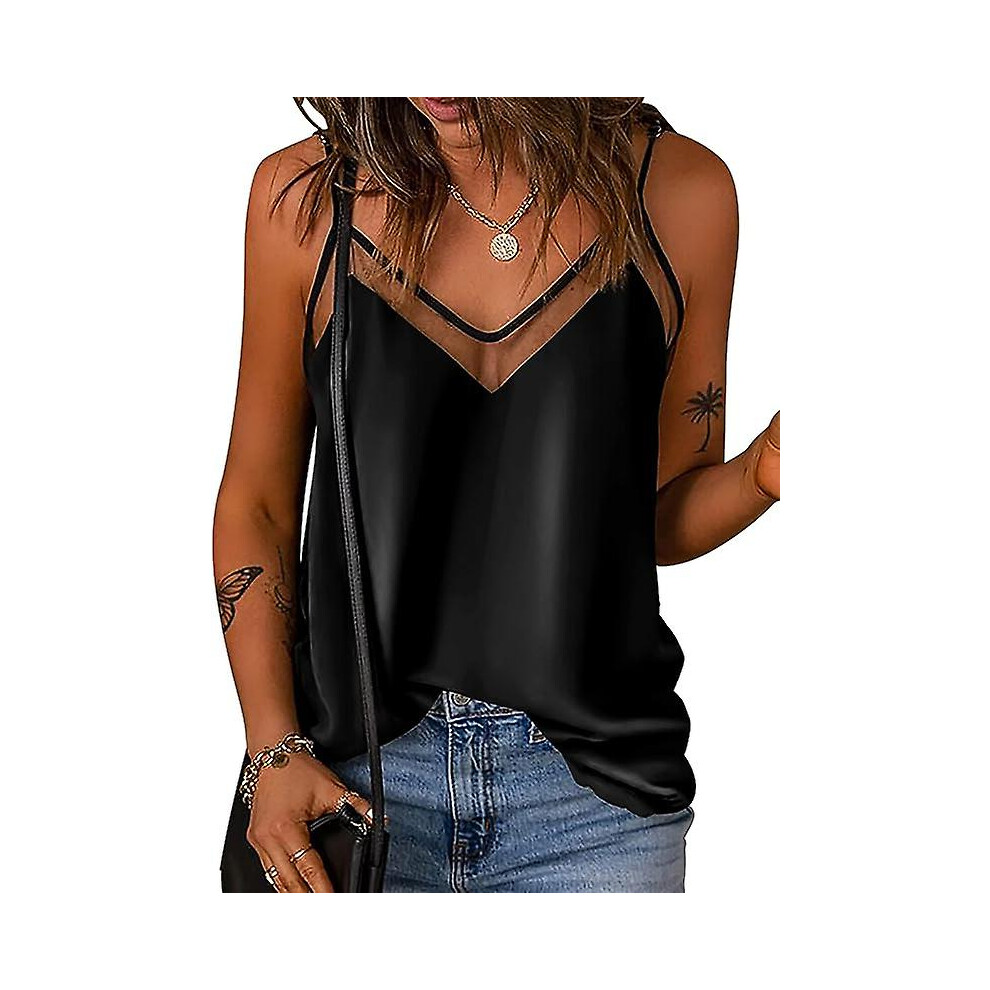 (As show, One size) Satin Mesh V Neck Tank Top Women Cami Top Silk Camisole Casual Blouselarge
