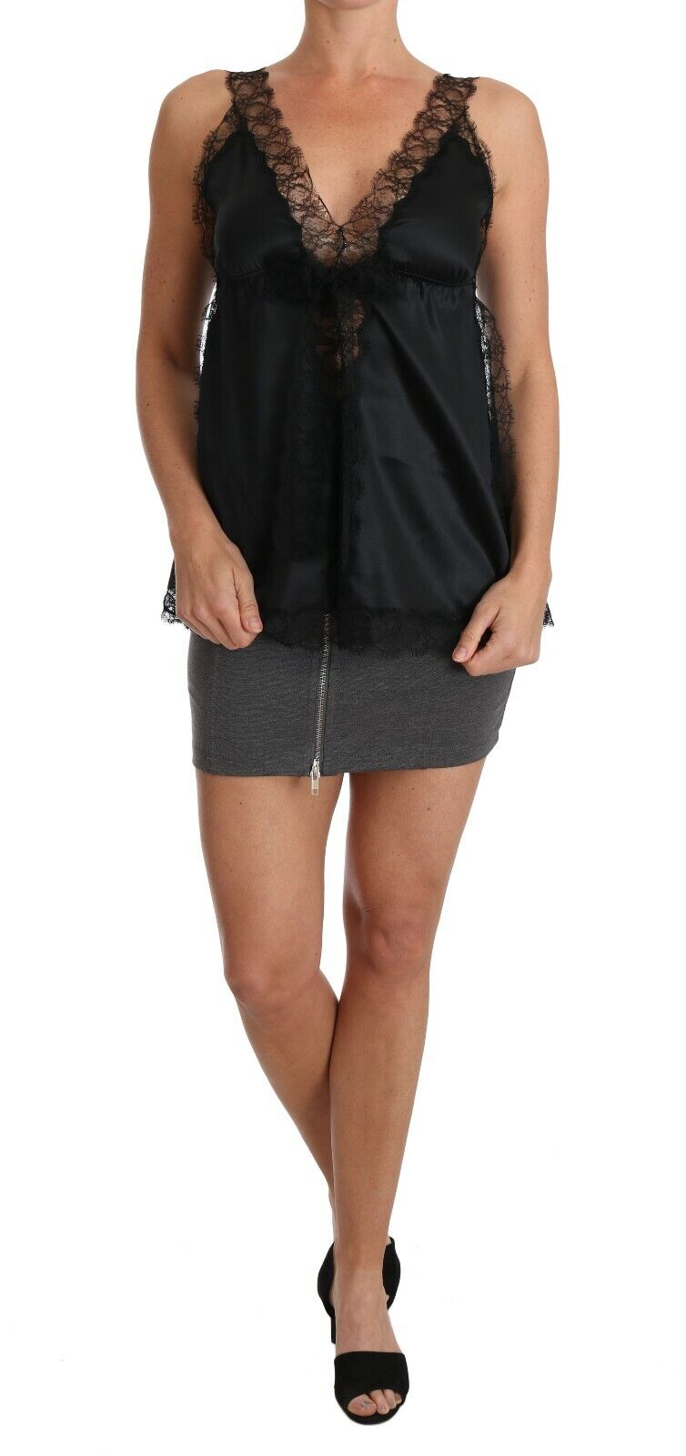DOLCE & GABBANA Lingerie Cami Black Lace Silk Stretch Top IT1 / US XS