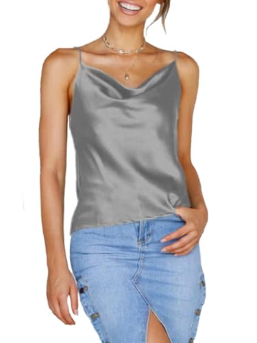 Zeagoo Grey Satin Cami Top Silk Tank Tops Camisole Tops for Women Scoop Neck Vest Casual Sleeveless Blouses Summer Basic Loose Fit Tank Shirt M